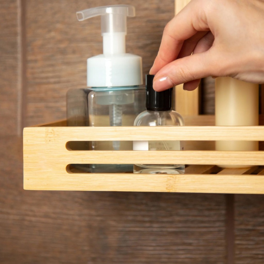 Praktická a odolná kúpeľňová bambusová polička sa bude skvele hodiť k ukladaniu hygienických prostriedkov, kozmetiky a ďalších drobností. Umožní vám udržiavať v kúpeľni poriadok a jej moderný vzhľad bude ďalším dekoratívnym prvkom vo vašej kúpeľni. Prírodné bambusové drevo je ľahké, veľmi trvanlivé a tiež veľmi odolné voči vlhkosti.