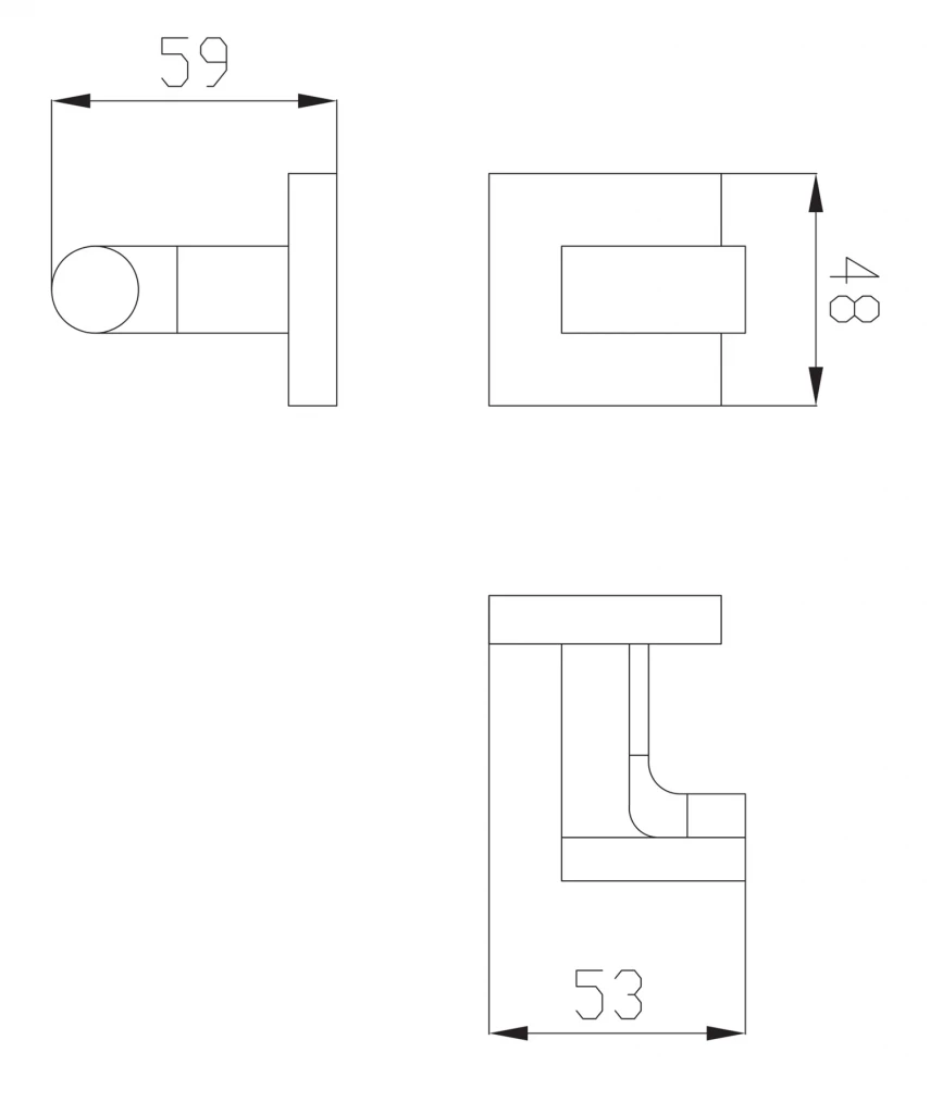 - šírka: 5 cm, výška: 5 cm, vzdialenosť od steny: 6 cm