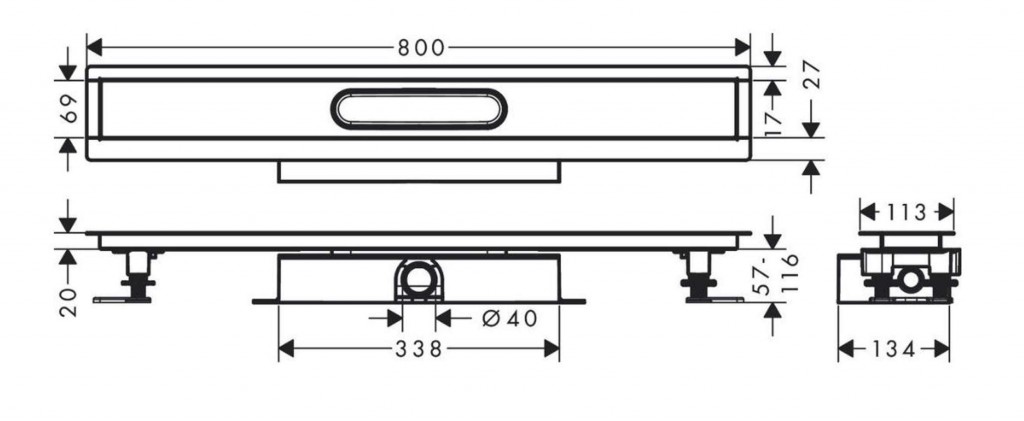 Kompletná sada lineárneho sprchového žľabu uBox universal 800, pre plochú inštaláciu