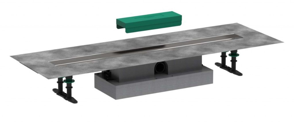 Pre kompletný výrobok je nutné objednať rozmerovo vhodný sprchovací žľab s roštom, ktorý nie je súčasťou dodávky.
