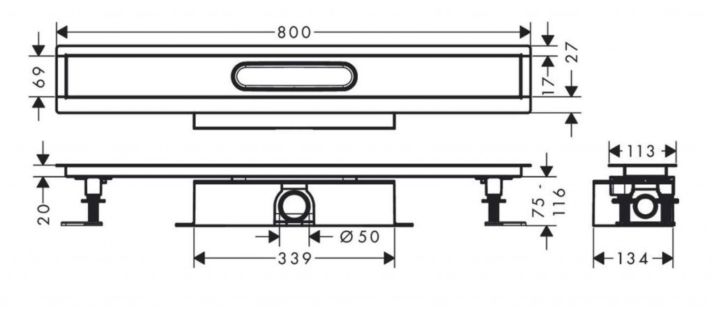 Kompletná sada lineárneho sprchového žľabu uBox universal 800, pre štandardnú inštaláciu