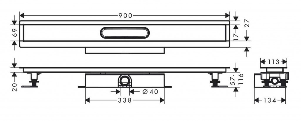 Kompletná sada lineárneho sprchového žľabu uBox universal 900, pre plochú inštaláciu