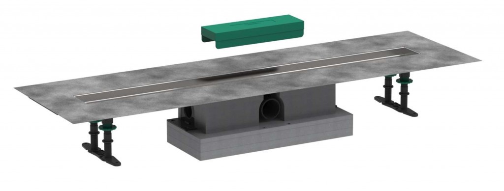 Pre kompletný výrobok je nutné objednať rozmerovo vhodný sprchovací žľab s roštom, ktorý nie je súčasťou dodávky.