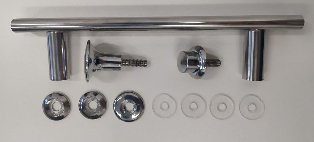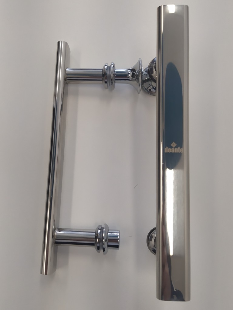 Súprava kľučiek pre sprchové dvere s rozstupom montážnych otvorov 140mm.