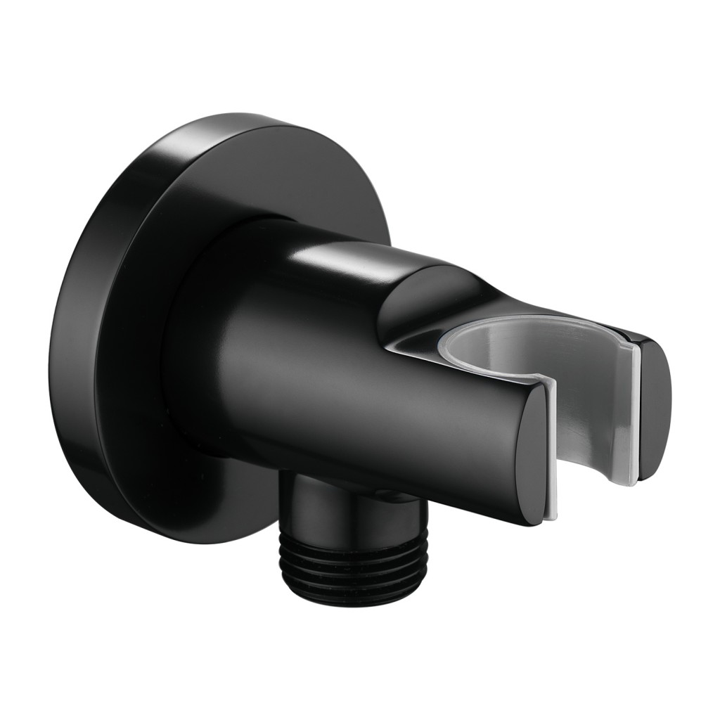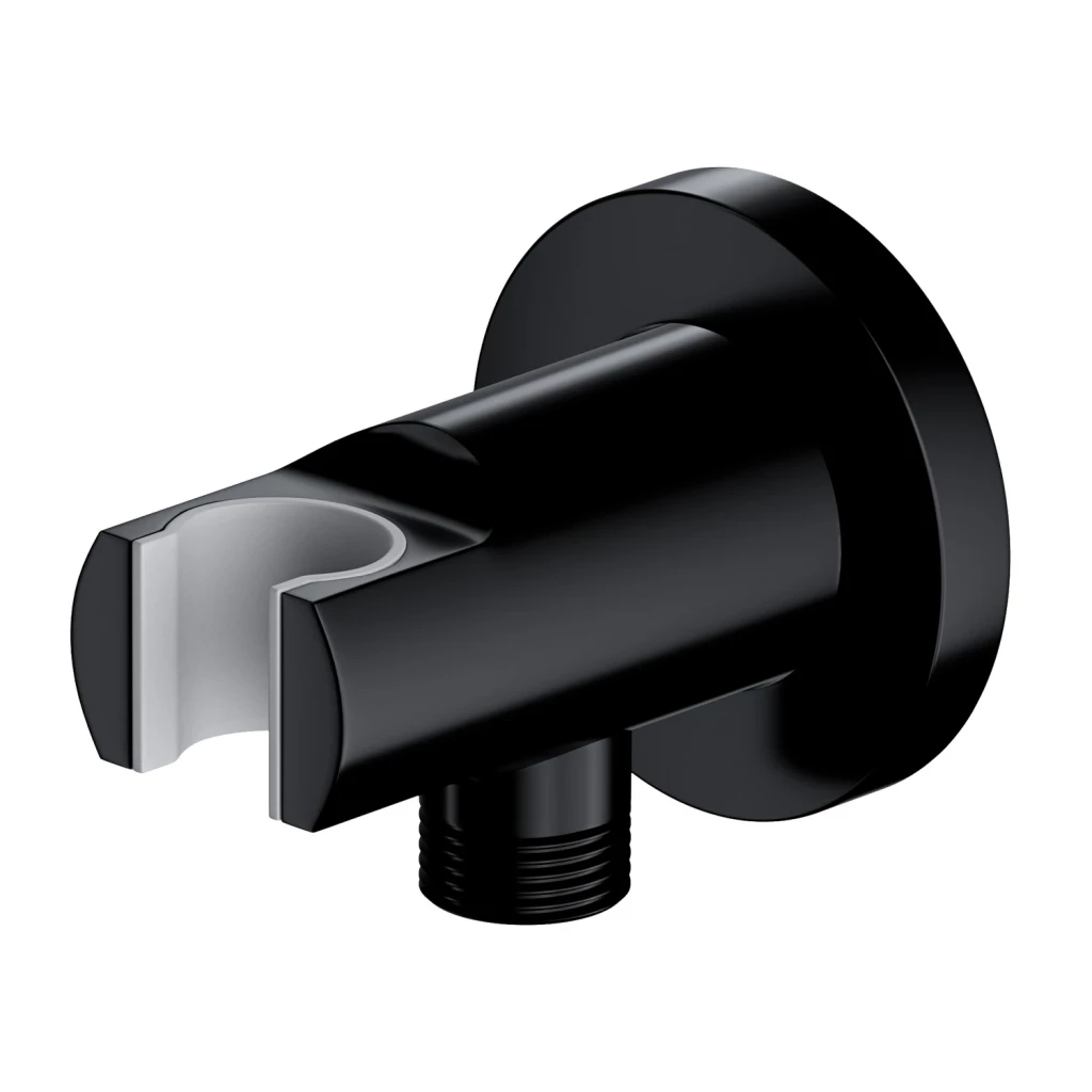 Mosadzný držiak ručnej sprchy s vyústením pre podomietkovú montáž okrúhleho tvaru.