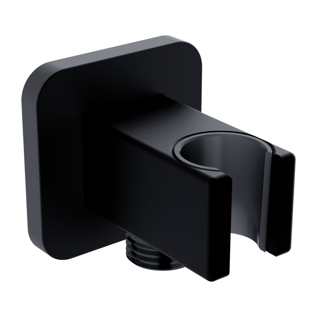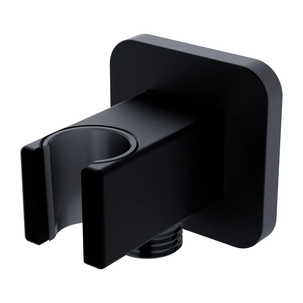 Mosadzný držiak ručnej sprchy s vyústením pre podomietkovú montáž hranatého tvaru.