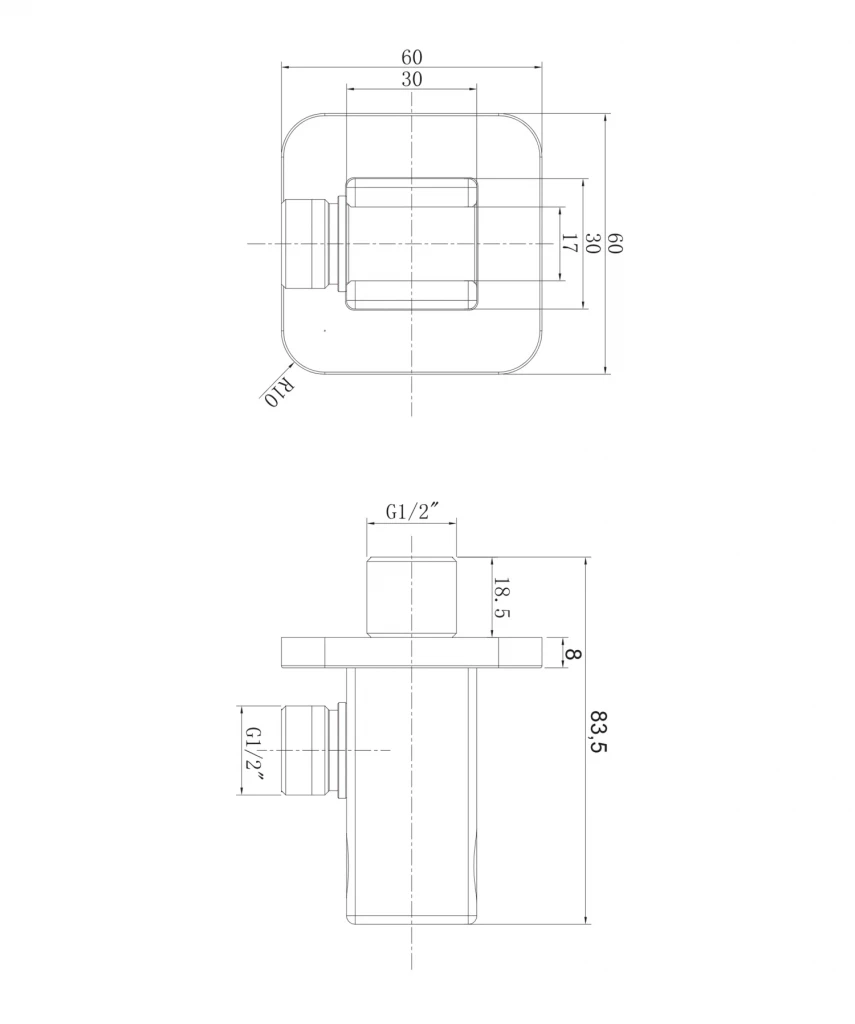- rozmer rozety: 6 x 6 cm, vzdialenosť od steny: 6,6 cm