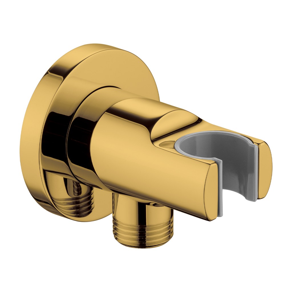 Mosadzný držiak ručnej sprchy s vyústením pre podomietkovú montáž okrúhleho tvaru.
