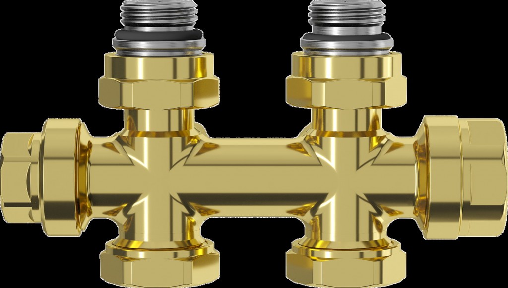 Uni-Term uhlový ventil pre radiátor s rozstupom 50 mm , obojstranný. Tento typ pripojenia je navrhnutý tak, aby sa pripájal k radiátoru v strede jeho spodnej časti . Výhodou stredového pripojenia je, že poskytuje čistejší a estetickejší vzhľad, pretože potrubie je menej viditeľné a je ľahšie ho integrovať do designu miestnosti.