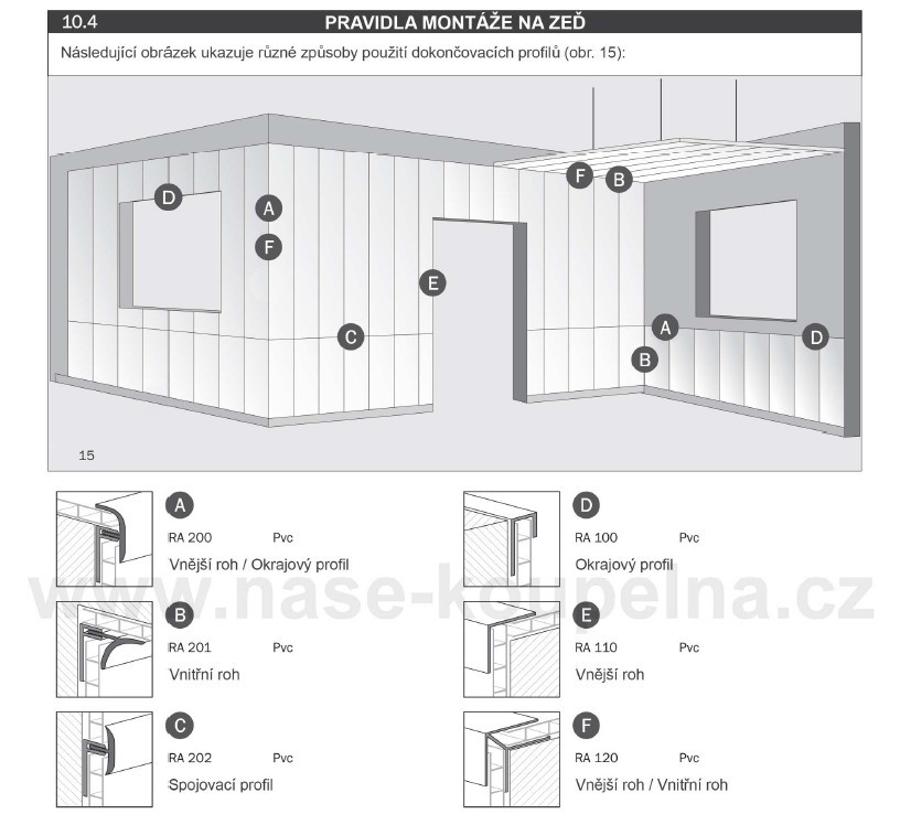 Ukončovací F profil sa používa na zakončenie obkladanej plochy, zabraňuje usadzovaniu nečistôt a prienikom vlhkosti do profilov. Veľmi dobre sa s ním pracuje, zvládne to každý domáci majster. Je široká paleta farieb.