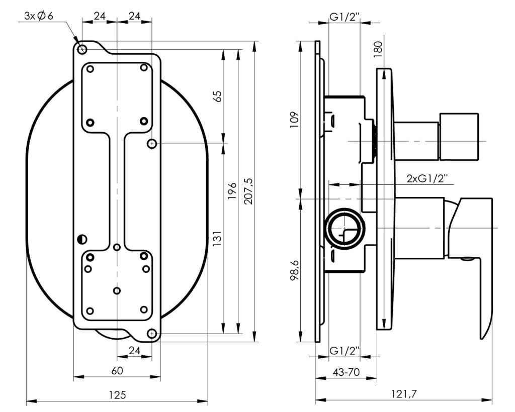 - Podomietková sprchová batéria vrátane podomietkového modulu, 2-cestná