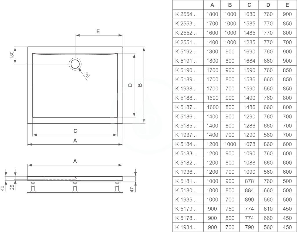 Pohľadová výška 40 mm, konštrukčná výška 47 mm.