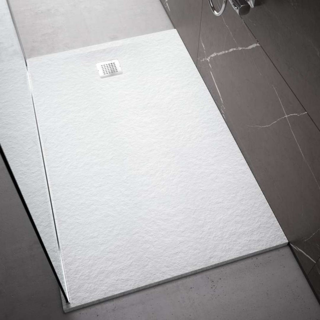 Ultra plochá, elegantná sprchovacia vanička s inovatívnym reliéfnym povrchom z vysoko odolného materiálu Ideal Solid (zmes prírodných minerálov a živice). Vzhľad otesaného kameňa.