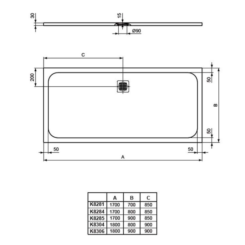 výška: 30 mm, dĺžka: 1700 mm, šírka: 700 mm