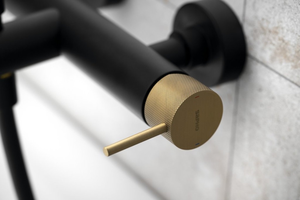 SAPHO - ULTRASAN nástenná vaňová batéria, čierná mat/zlato mat (UT010VBG)