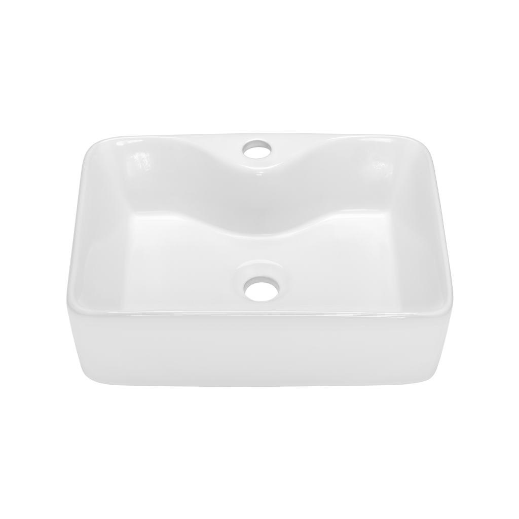 Neri je umývadlo na dosku s otvorom na batériu. Módny, geometrický tvar dodá kúpeľni moderný ráz.