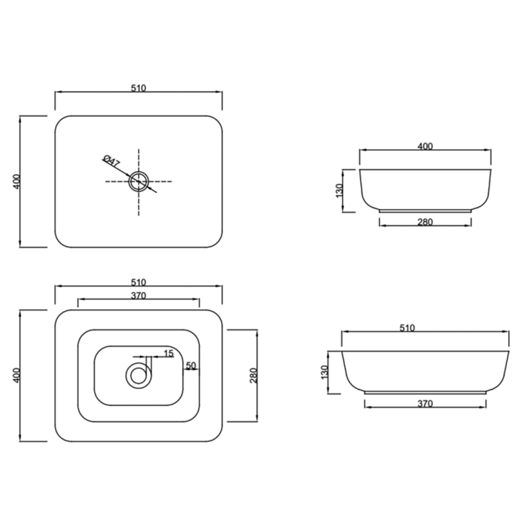 Samotné umývadlo na dosku je dlhé 51 cm a vysoké 13 cm , čo nabáda k tomu, že je možnosť umiestnenia dvoch umývadiel vedľa seba /pokiaľ vám priestor dovolí/. Umývadlo nemá bezpečnostný prepad ani otvor pre batériu. Preto k nemu vyberajte vysokú umývadlovú batériu alebo podomietkovú umývadlovú batériu . Vždy sa snažte vyberať takú, aby ústie kohútika smerovalo doprostred umývadla. Jedine tak zabránite nechcenému rozstrekovaniu vody a zároveň budete mať dostatok priestoru na umývanie rúk.