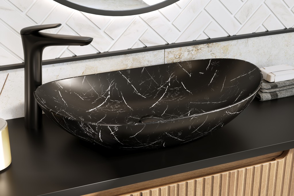 Dizajnové umývadlo Comad Lena ( UN-LENA-MB2) zaujme svojim elegantným oválnym tvarom a moderným matne čiernym prevedením. Je určené na umiestnenie na dosku, kde sa stane výrazným prvkom každej kúpeľne. Vyrobené z kvalitnej keramiky, ktorá zaisťuje odolnosť, ľahkú údržbu a dlhú životnosť. Ideálna voľba pre tých, ktorí hľadajú kombináciu štýlu a funkčnosti