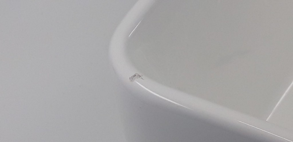 výrobná vada na hornej hrane keramiky, viac informácií vady nájdete na fotografiách v galérii.