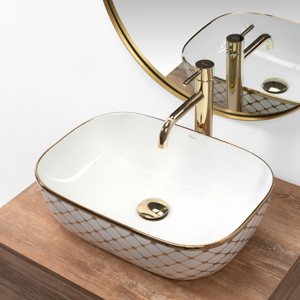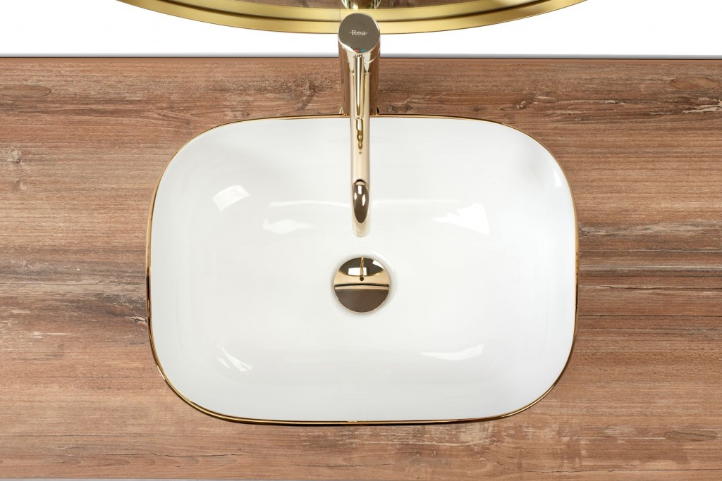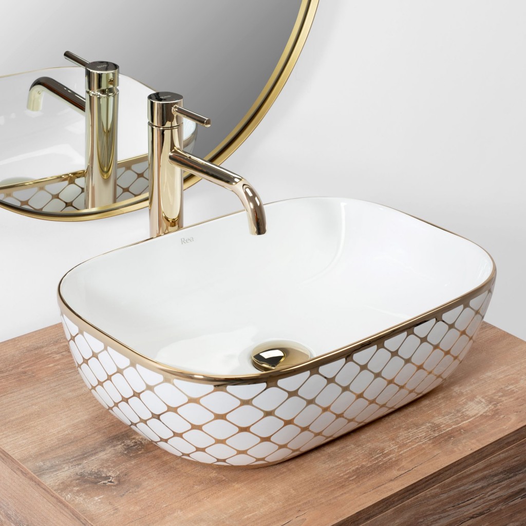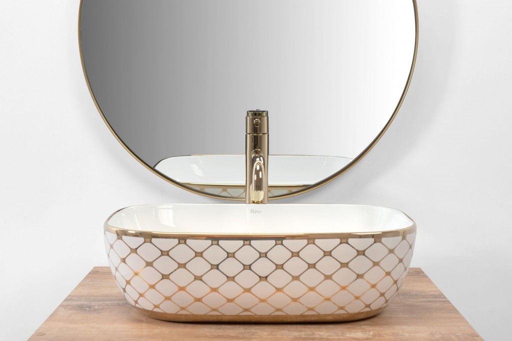 Umývadlo Belinda vyrobené z vysoko kvalitných materiálov splní požiadavky ľudí, ktorí oceňujú kvalitu. Zaujímavá a originálna kombinácia snehovo bielej zakončená zlatým lemom a diamantovým vzorom. Vďaka harmonickým líniám sa bude skvele hodiť ku každému štýlu, modernému aj klasickému.