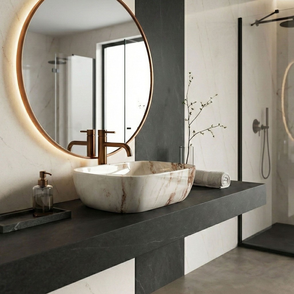 Oceňte eleganciu a moderný štýl vo svojej kúpeľni vďaka umývadlu na dosku Rea Belinda Marrone Shiny v povrchovej úprave imitujúcej prírodný kameň. Ide o ideálne spojenie štýlu a funkčnosti, ktoré nadchne každého, kto hľadá jedinečné vizuálne riešenie. Umývadlo je vyrobené z vysoko kvalitnej sanitárnej keramiky, takže nielen podčiarkne dizajn interiéru, ale tiež zaistí spoľahlivosť a dlhú životnosť. Vzor Marrone Shiny – jedinečná štruktúra imitujúca kameň dodá priestoru luxusný a prirodzený charakter pri využití priestoru na doske Bez otvoru pre batériu – umožňuje použitie elegantnej podomietkovej batérie alebo vysokej stojankovej batérie, čo rozširuje možnosti aranžmánu Bez prepadového otvoru – zaručuje dokonale hladký vnútorný tvar, zvyšuje estetiku a uľahčuje každodennú starostlivosť Umývadlo na dosku Rea Belinda Marrone Shiny je voľbou pre tých, ktorí si cení komfort. Perfektné v každom detaile, vyrobené s dôrazom na kvalitu a estetiku, bude hlavnou ozdobou vašej umývadlovej zóny. Vďaka pevnej konštrukcii zo sanitárnej keramiky si môžete byť istí, že si produkt zachová bezchybný vzhľad po dlhé roky a zaistí pohodlie každý deň.