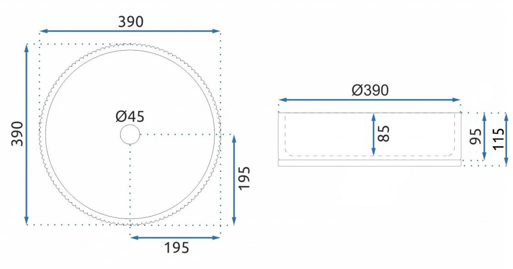 Umývadlo má priemer 39 cm a pohodlne sa u neho umyje jedna osoba.