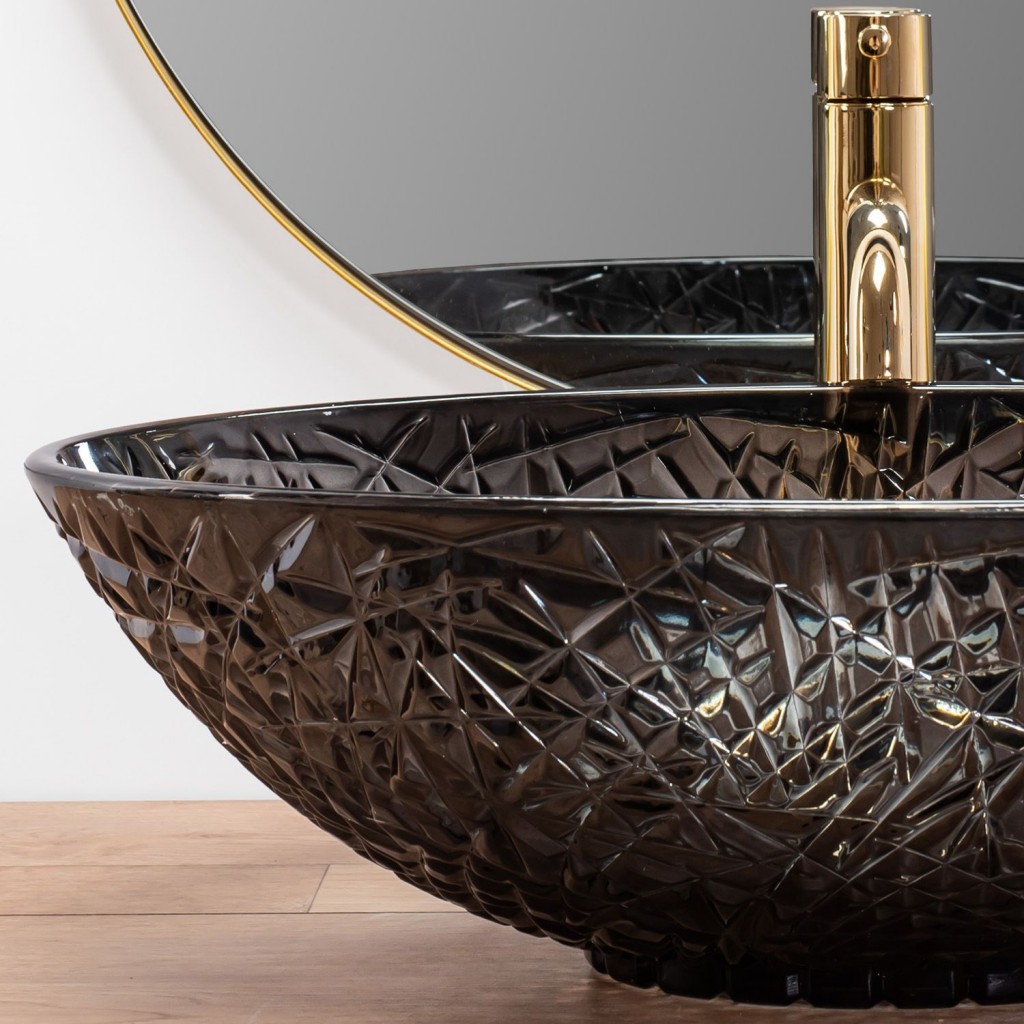 Umývadlo na dosku FROST BLACK má štandardný priemer vypúšťacieho otvoru
