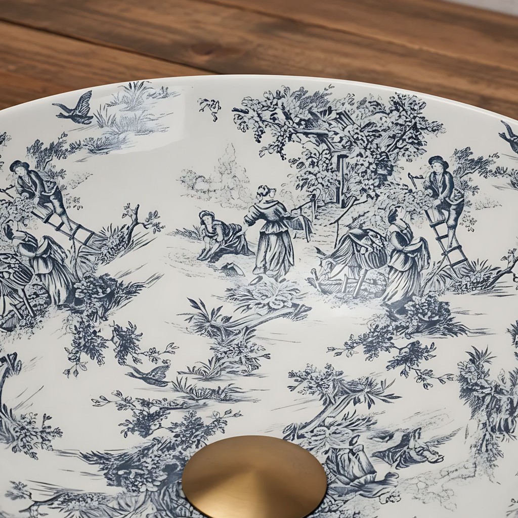 Chcete dodať svojej kúpeľni jedinečný rustikálny nádych? Objavte umývadlo na dosku Rea Juliana. Dokonale spája kvalitnú sanitárnu keramiku s originálnym designom, ktorý upúta pozornosť. Umývadlo zaujme bohatým vintage vzorom vo vnútri a kontrastnou modrou štruktúrou zvonku. Originálny rustikálny vzor – modré zdobenie vo vnútri misy dodáva interiéru osobitý charakter. Kontrastný povrch – hladké vnútro a štruktúrovaný vonkajšok vytvárajú atraktívny efekt. vystavenie krásy umývadla. Okrúhly tvar – klasický a nadčasový. Bez otvoru pre batériu – určené pre vysoké alebo nástenné batérie. Bez prepadu – minimalistický a hladký dizajn. Umývadlo Rea Juliana je ideálnou voľbou pre milovníkov originality a štýlu vintage.