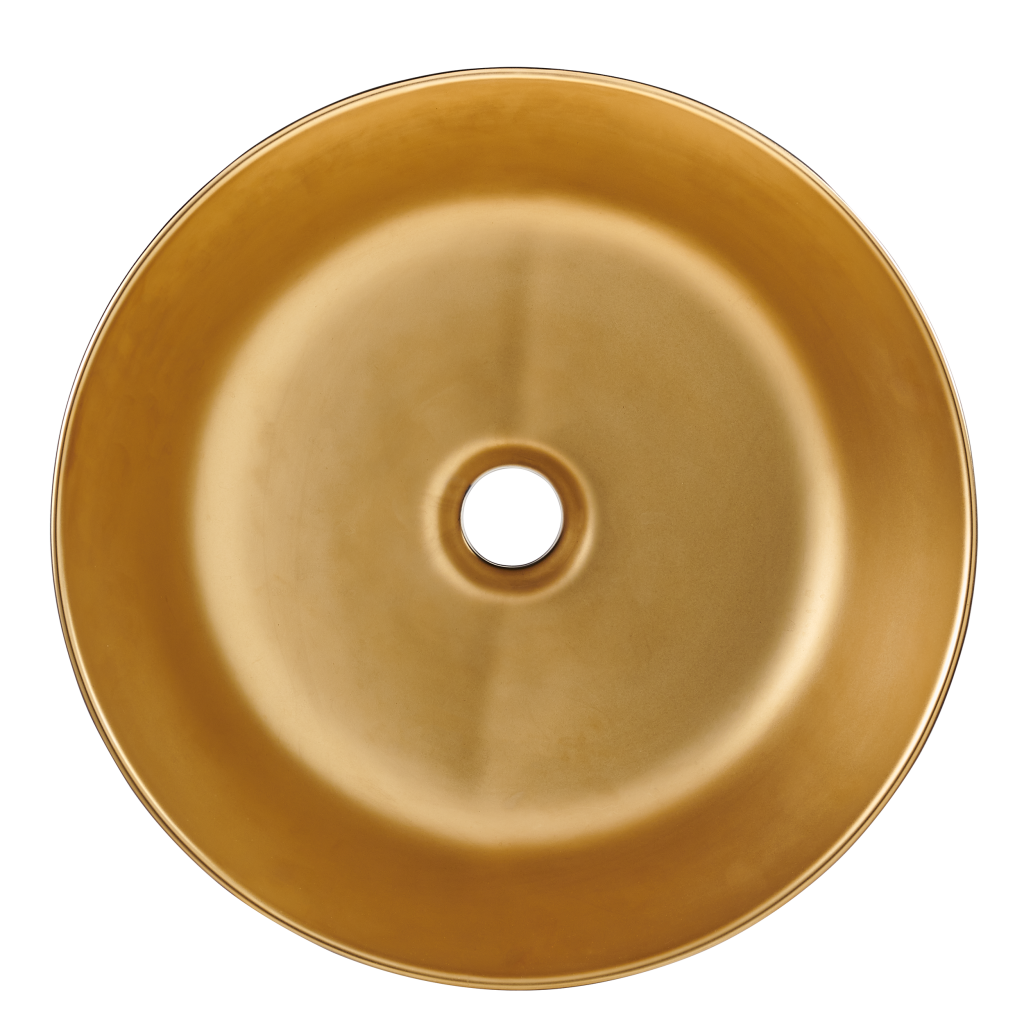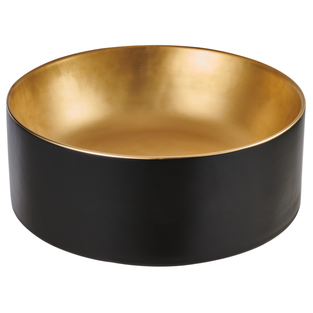 Rozmery balenia kolektív (výška/šírka/hĺbka)[m] : 0,43x0,16x0,43 Množstvo v balení kolektív : 1 PC. Hmotnosť balenia kolektív : 8,35 kg Umývadlo Keto na dosku je moderná farebná kombinácia ideálna pre očarujúce interiéry. Sýto čierna a zlatá sa skvele dopĺňajú. Vonkajšie okraje umývadla sú čierne, vnútorný povrch je zlatý s matným povrchom. Jeho priemer je 42 cm, takže sa skvele dopĺňa s umývadlovou plochou.