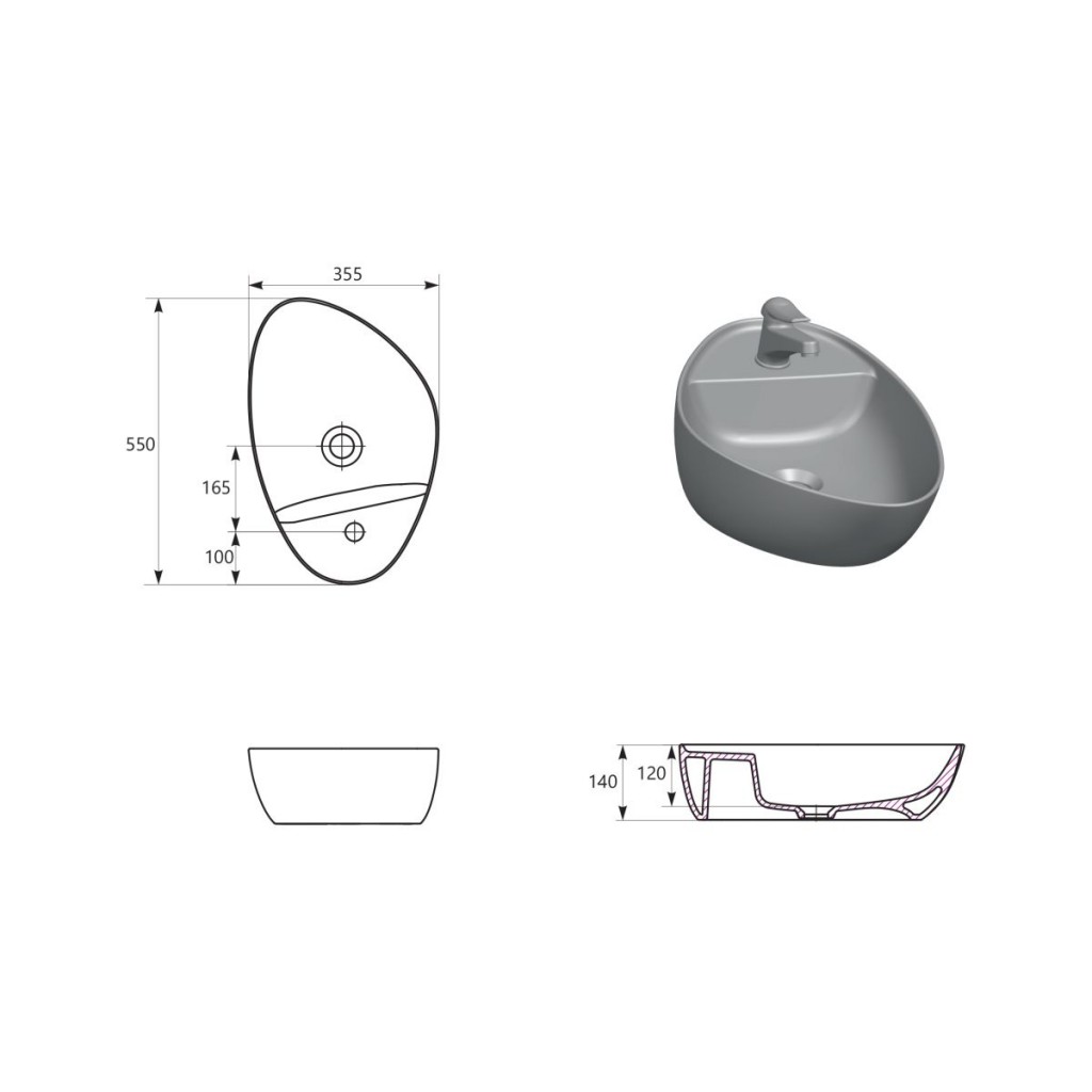 Umývadlo na dosku MODUO 55 (nepravidelného tvaru) s tenkými 8 milimetrovými stenami je vyrobené zo šamotovej keramiky. Vďaka funkčnému a estetickému dizajnu sa dokonale hodí do moderných aj tradičných kúpeľní a veľmi dobre sa kombinuje s drevenými alebo kamennými, pracovnými doskami. Otvor pre batériu vám umožní namontovať k tomuto modelu umývadla akúkoľvek nízku batériu.