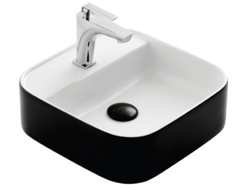 Luxusné a praktické umývadlo na dosku NOVA . Umývadlo je z vonkajšej strany vo farbe čierna lesklá az vnútornej strany vo farbe biela lesklá . V elmi obľúbenej zaoblenej línii umývadla na dosku pomôžu v novej kúpeľni dotvoriť príjemnú atmosféru. Umývadlo na dosku je s otvorom pre vodovodnú batériu a tiež s funkčne navrhnutou odkladacou plochou. Vyrobené zo špičkovej sanitárnej keramiky.