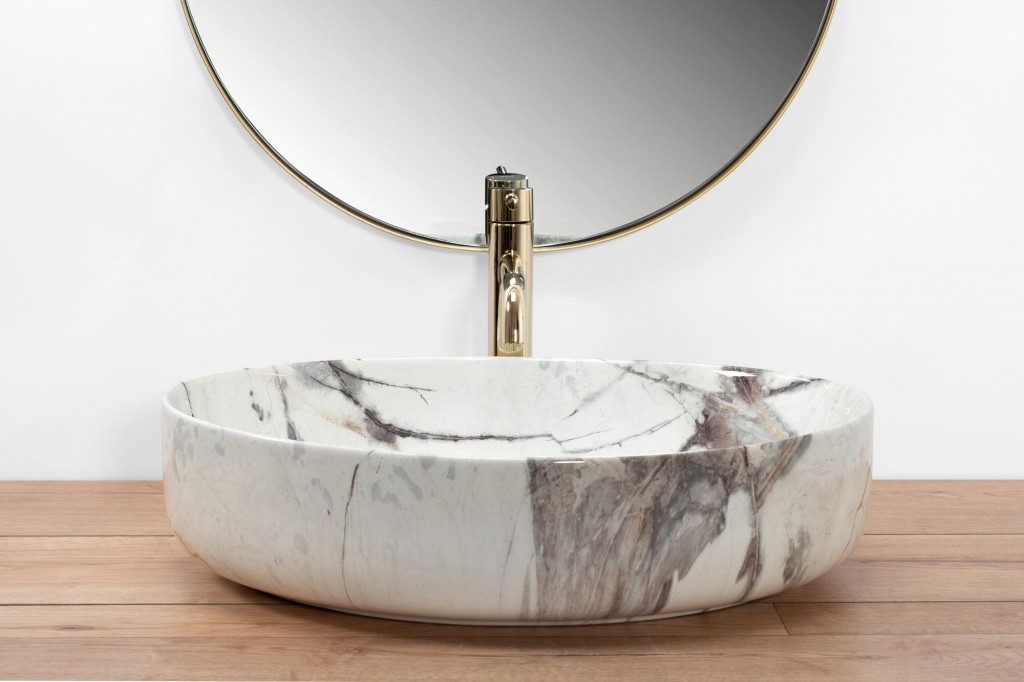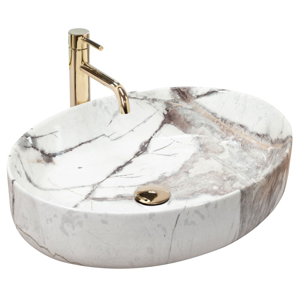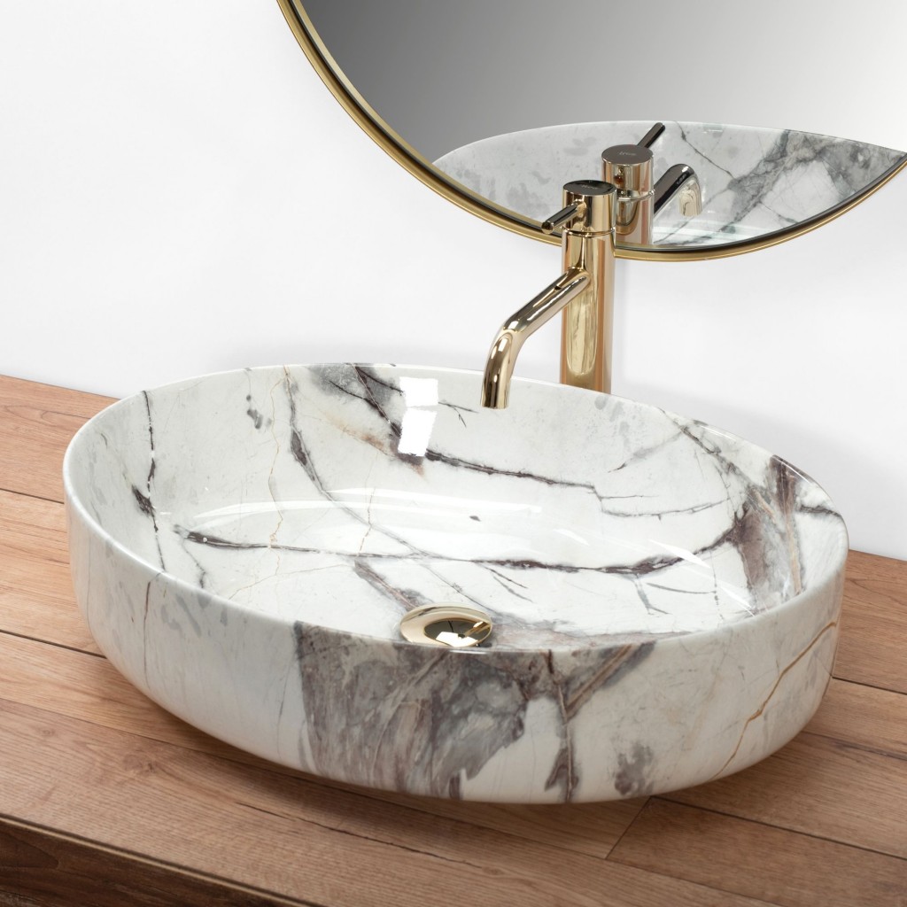 Moderné umývadlo Queen je kombináciou prepracovaného tvaru misy s dokonalou keramikou a hladkým povrchom. Queen je umývadlo, ktoré sa montuje priamo na dosku, vďaka čomu zariadite kúpeľňu a ušetríte veľa miesta. Charakteristický tvar z neho robí ozdobu každého interiéru. Každý z našich drezov má jedinečný vzor kameňa.