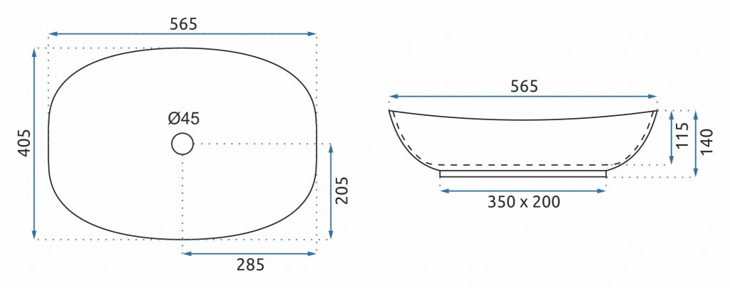 Samotné umývadlo na dosku je dlhé 56,5 cm a hlboké 40,5 cm , čo nabáda k tomu, že je možnosť umiestnenia dvoch umývadiel vedľa seba /pokiaľ vám priestor dovolí/. Umývadlo nemá bezpečnostný prepad a je bez otvoru pre batériu. Preto k nemu vyberajte vysokú umývadlovú batériu alebo nástennú umývadlovú batériu . Vždy sa snažte vyberať takú, aby ústie kohútika smerovalo doprostred umývadla. Jedine tak zabránite nechcenému rozstrekovaniu vody a zároveň budete mať dostatok priestoru na umývanie rúk.