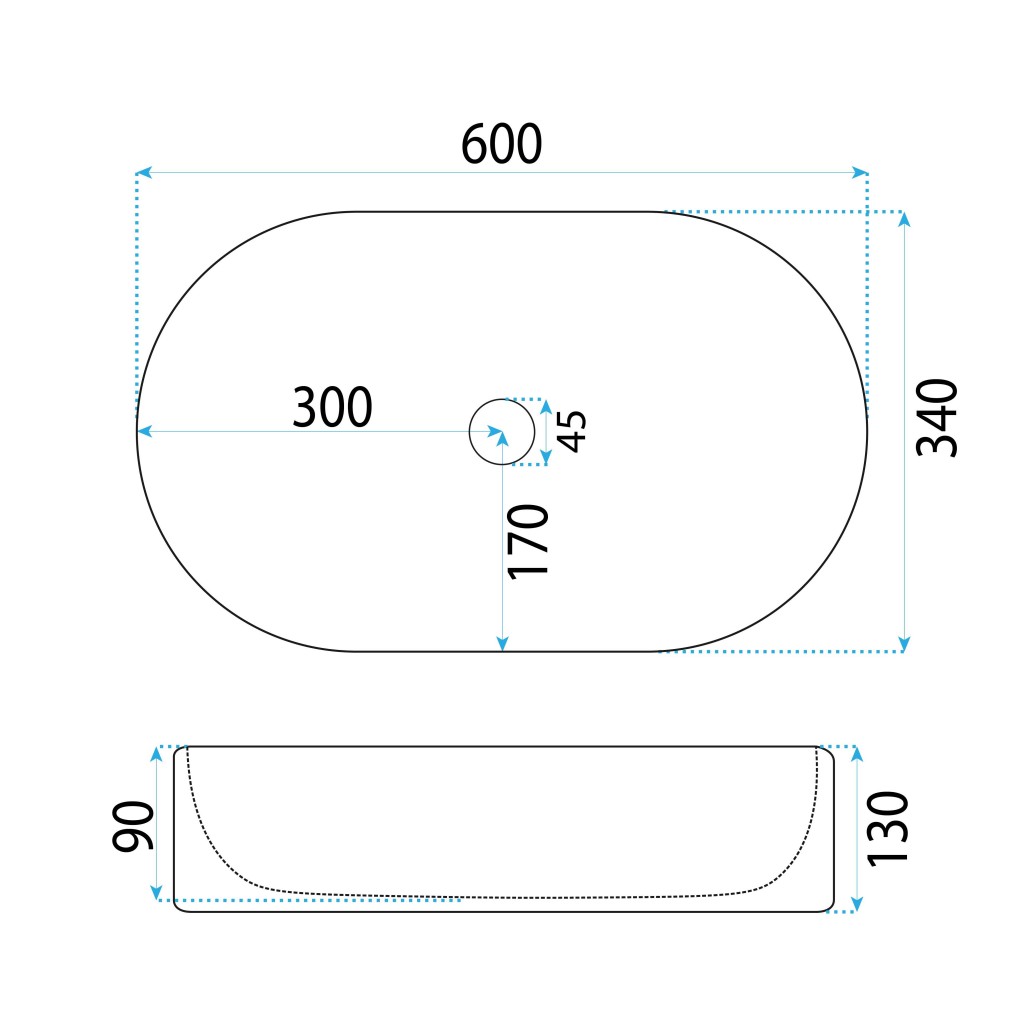 Samotné umývadlo na dosku je dlhé 60 cm a hlboké 34 cm , čo nabáda k tomu, že je možnosť umiestnenia dvoch umývadiel vedľa seba /pokiaľ vám priestor dovolí/. Umývadlo nemá bezpečnostný prepad ani otvor pre batériu. Preto k nemu vyberajte vysokú umývadlovú batériu alebo podomietkovú umývadlovú batériu . Vždy sa snažte vyberať takú, aby ústie kohútika smerovalo doprostred umývadla. Jedine tak zabránite nechcenému rozstrekovaniu vody a zároveň budete mať dostatok priestoru na umývanie rúk.