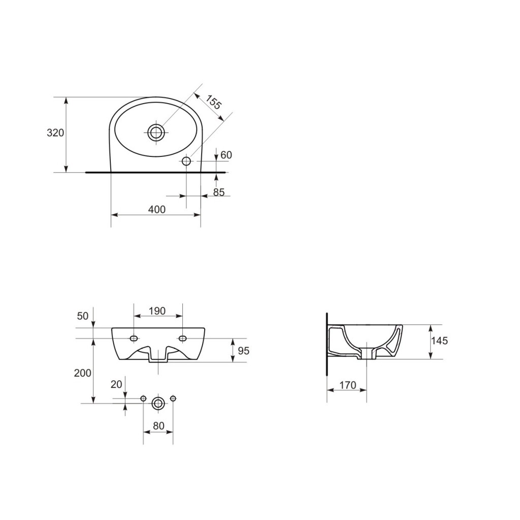 Závesné umývadlo Parva bielej farby s otvorom pre armatúru a prepadom, ideálny pre malé kúpeľne. Montáž k stene s chrómovým sifónom.