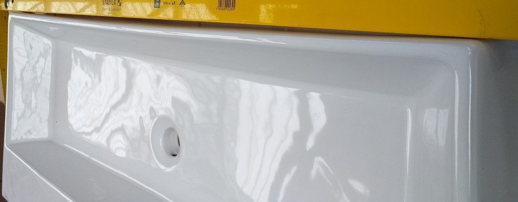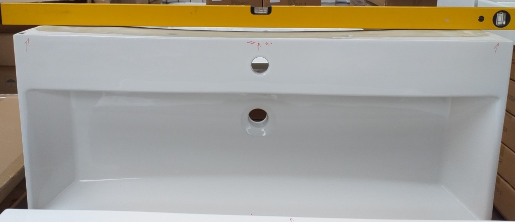 Zadná pohľadová hrana nie je rovná, táto vzhľadová chyba nemá vplyv na funkčnosť umývadla.