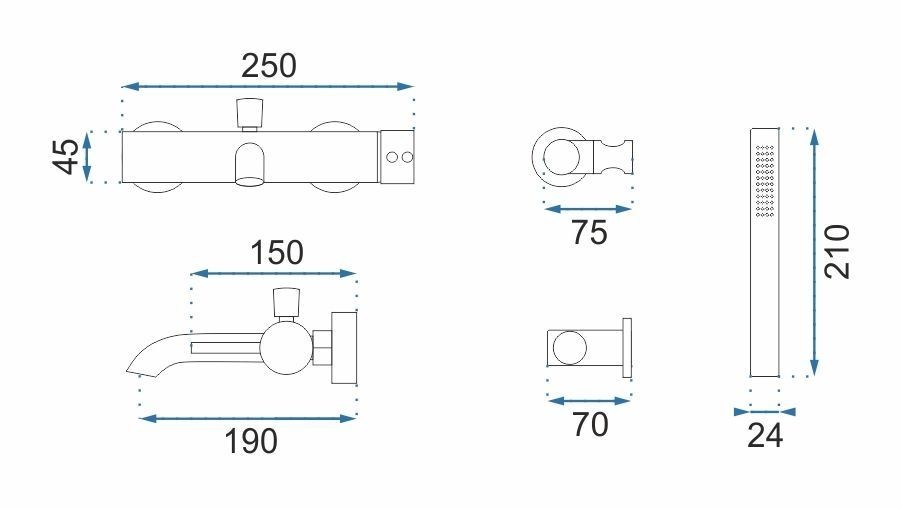 Funkčná a moderná vaňová batéria s príslušenstvom série Lungo . Ide o výrobok, ktorý dokonale vyplní priestor vašej kúpeľne pri zachovaní dokonalého vzhľadu a estetiky interiéru.
