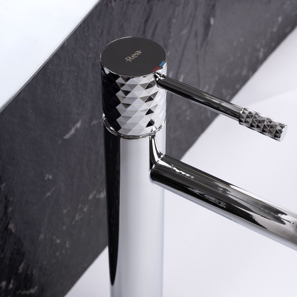 Predstavujeme Vám novú, mimoriadne designovú a veľmi modernú vysokú umývadlovú batériu. Táto batéria sa dokonale hodí do Vašej kúpeľne, kde vyplní Váš priestor a pritom zachová krásny vzhľad a estetiku interiéru. Batéria je určená na montáž na dosku a vďaka špeciálnej fáze výroby je batéria veľmi odolná a ľahko sa čistí. Dokonale designovaná a vďaka nezvyklým tvarom vysoká umývadlová batéria série Rea Lungo je batéria vyrobená z vysoko kvalitnej mosadze s úpravou v chrómovom prevedení. Lakovanie batérie bolo vykonané celkom v troch vrstvách a vďaka tomu je odolná voči korózii a strate farby. Montážny návod