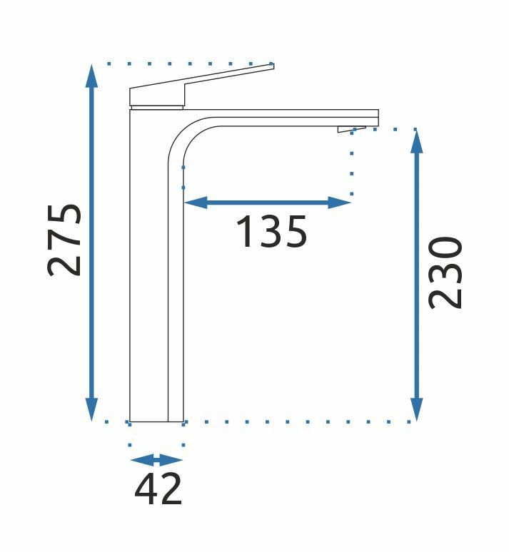 Svojou výškou 27,5 cm je umývadlová batéria MARCO ako stvorená na montáž na dosku. Samotná hubica vyrástla 23 cm od dosky, čo vytvára dostatok priestoru pre kúpu vyššieho umývadla (TIP: veľmi efektne vyzerá umývadlo na dosku Sofia ). Batéria má veľmi elegantné, dizajnové ovládanie prítoku vody. Ten jednoducho nasmerujete priamo do stredu umývadla, vďaka guľatej hubici dlhej 13,5 cm.
