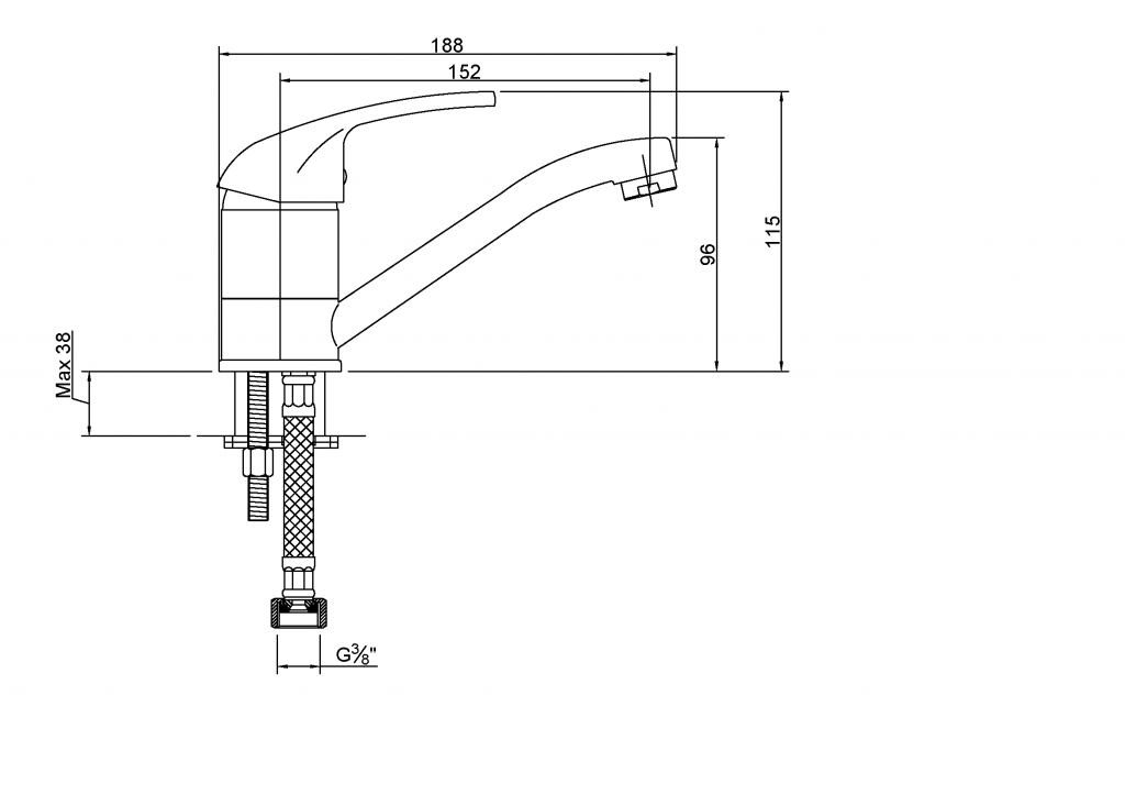 - dosah výtoku u tejto batérie je 152 mm, výška batérie je 115 mm, výška výtoku 93 mm