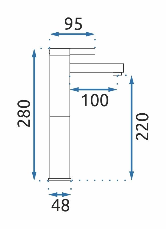 Umývadlová páková batéria s výškou 28 cm je ako stvorená na montáž na dosku vedľa umývadla (bez otvoru pre batériu). Samotná hubica je vo výške 22 cm od dosky, čo vytvára dostatok priestoru pre kúpu vyššieho umývadla . Bola vyrobená z odolnej mosadze a vďaka špeciálnej výrobnej fáze je povrch odolný a ľahko sa čistí.