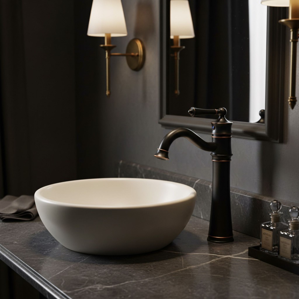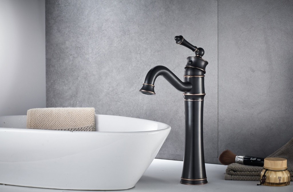 Samotná umývadlová batéria vás prekvapí svojim netradičným vzhľadom. Mosadzné telo pokryté odolnou vrstvou čiernej farby vytvorí nečakaný kontrast a zaujme nielen svojimi tvarmi, ale aj oprýskanými prvkami v bronzovej farbe.
