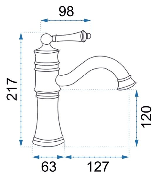 - Nízka výška 21,5 cm, je perfektná pre montáž priamo na umývadlo, pretože poskytne dostatok priestoru na umývanie rúk. Ak chcete batériu postaviť vedľa umývadla, zvoľte vysokú batériu Vintage.