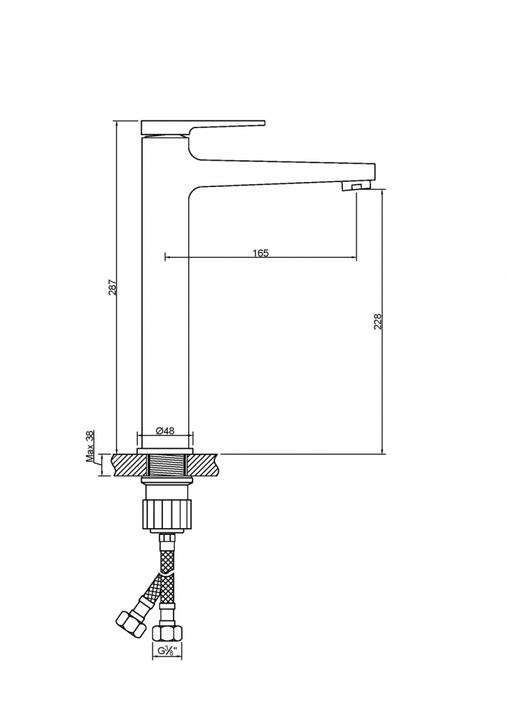 - dosah výtoku pri tejto batérii je 16,5 mm, výška batérie je 287 mm a výška výtoku je 224 mm