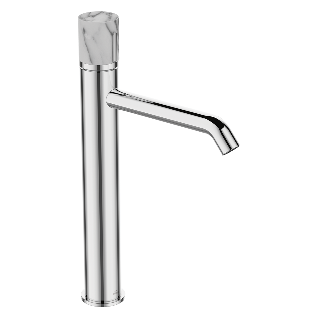 Vysoká umývadlová batéria Stone Plus je dokonalým doplnkom umývadla na dosku. Decentná povrchová úprava rukoväte batérie s mramorom dodá priestoru umývadla šik a eleganciu. Už to nie je len vodovodná batéria, ale predovšetkým šperk modernej kúpeľne. Mramor je jedným z najmódnejších vzorov v interiérovom designe. Kombinácia bieleho mramoru a chrómu vytvára ľahkú a nadčasovú ponuku do kúpeľne. Vybavený vodou šetriacim perlátorom je zároveň ekologickým riešením. Systém rýchlej inštalácie znamená, že inštalácia batérie zaberie len chvíľku.