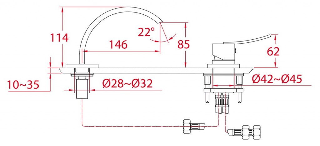 - Montáž priamo na umývadlo alebo na platňu za umývadlom