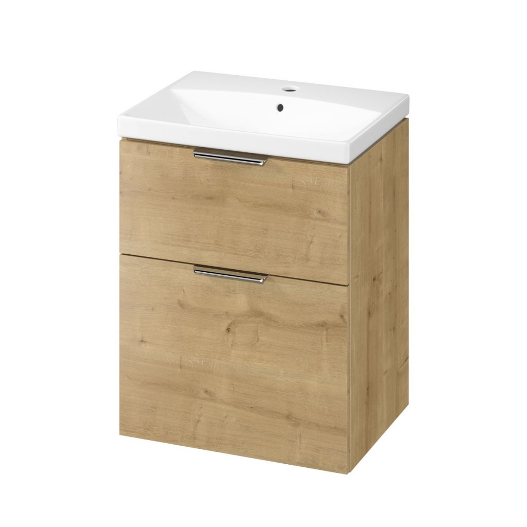 Skrinka pod umývadlo CITY je vyrobená z drevotriesky, vybavená dvoma priestrannými zásuvkami so systémom soft-close . Skrinku zladíme s pohodlnými úchytmi v čiernej alebo matne striebornej farbe (predávajú sa samostatne). V rovnakých farbách je možné zakúpiť aj nábytkové nohy, ktoré budú plniť dekoratívnu funkciu.