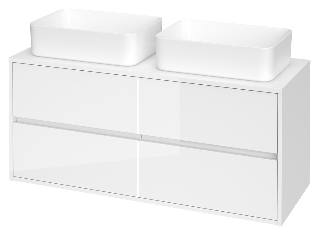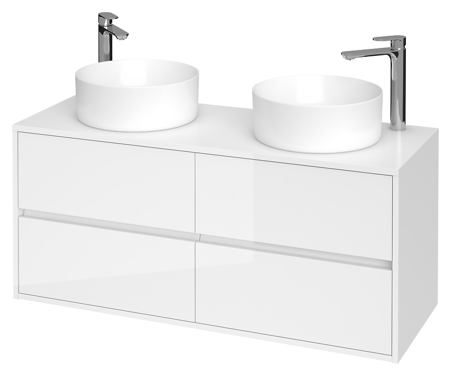 Závesná dvojumývadlová skrinka CREA 120 so štyrmi výsuvnými priestrannými boxmi je vyrobená z drevotrieskovej dosky modernou technológiou AQUASAFE /zvýšená odolnosť proti vlhkosti/. Ich vnútro je pokryté elegantnou šedou ľanovou štruktúrou. Skrinka pôsobí elegantným vzhľadom vďaka zapusteniu prednej časti a využitiu skrytých madiel. Zásuvky sú vybavené pojazdmi "HAFELE" s plným výsuvom a tichým uzatváracím systémom, ktorý zvyšuje komfort používania.