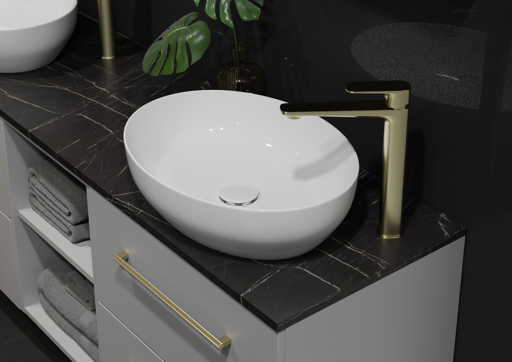 Umývadlová skrinka je možné inštalovať s nábytkovým umývadlom alebo s použitím odkladacej dosky a následne vybrať umývadlo na dosku.