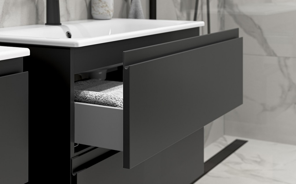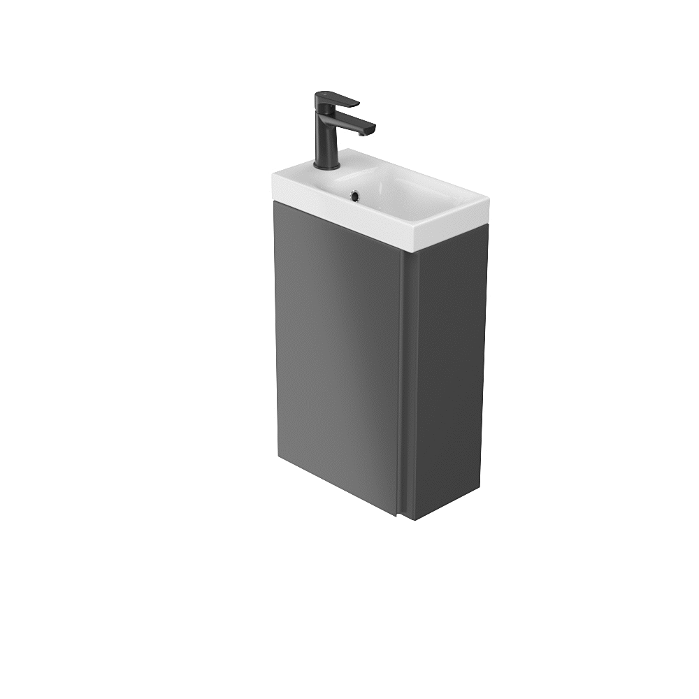 Malá skrinka pod umývadlo MODUO 40 s jednoduchým moderným tvarom. Čelá skrinky sú vyrobené z lakovanej nábytkovej MDF dosky antracitovej farby s matným povrchom. Otváranie je univerzálne, jej orientáciu si zvolíte pri jej montáži. Skrinky série MODUO majú pohodlné frézované úchyty, ktoré vytvárajú dekoratívne prvky a umožňujú jednoduché otváranie a zatváranie dverí alebo šuplíkov. Dvierka sú vybavené systémom mäkkého zatvárania. Skrinka je určená na montáž s nábytkovým umývadlom MODUO 40.